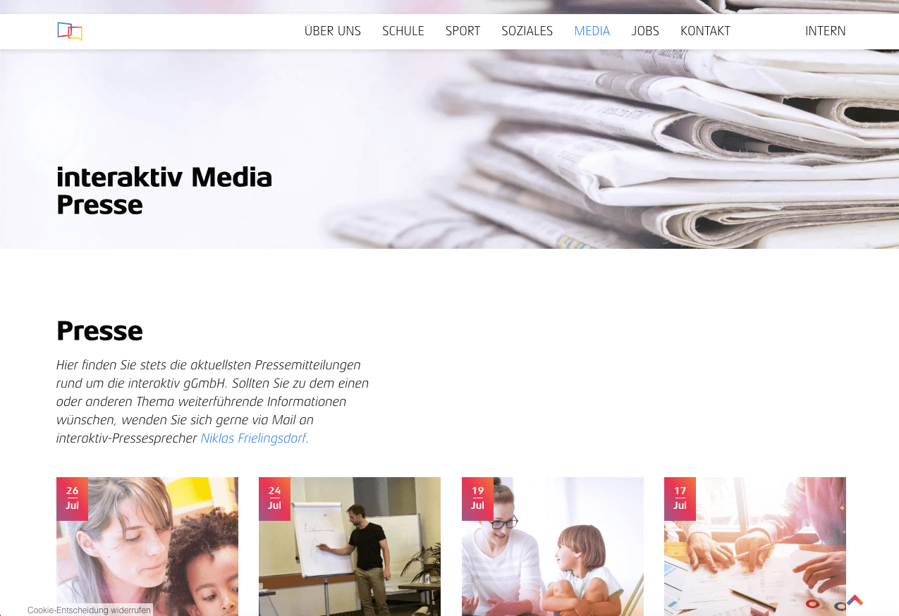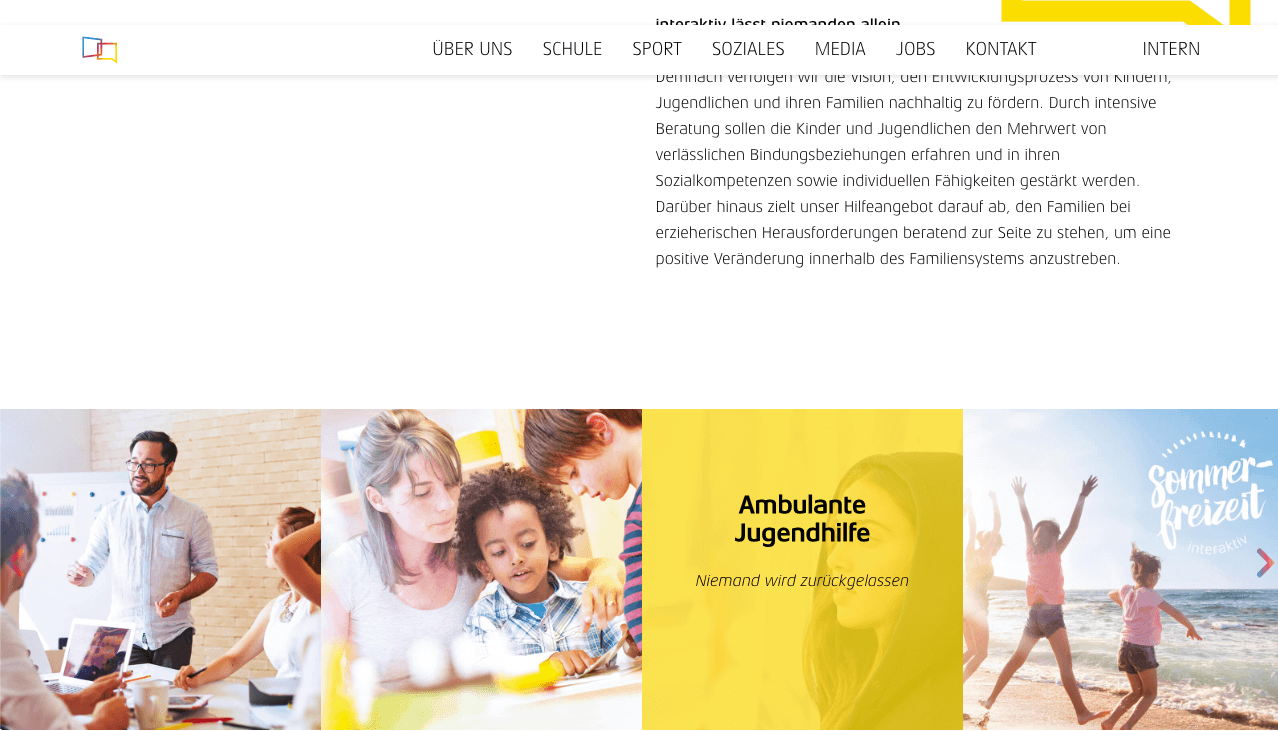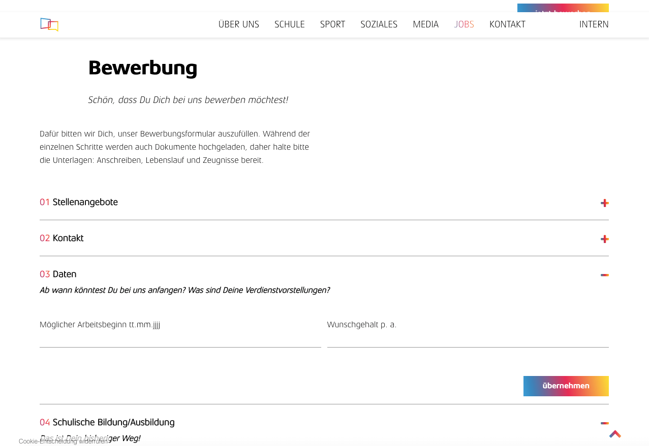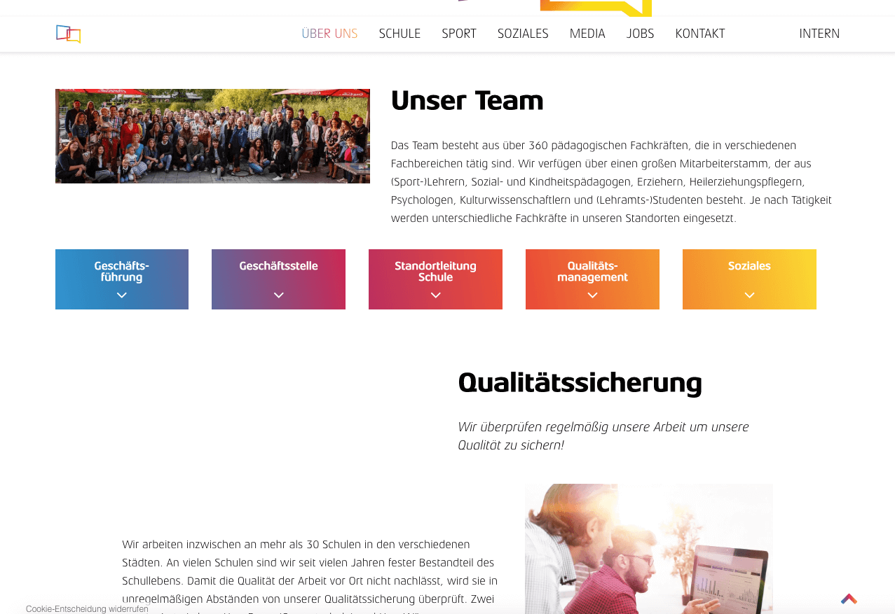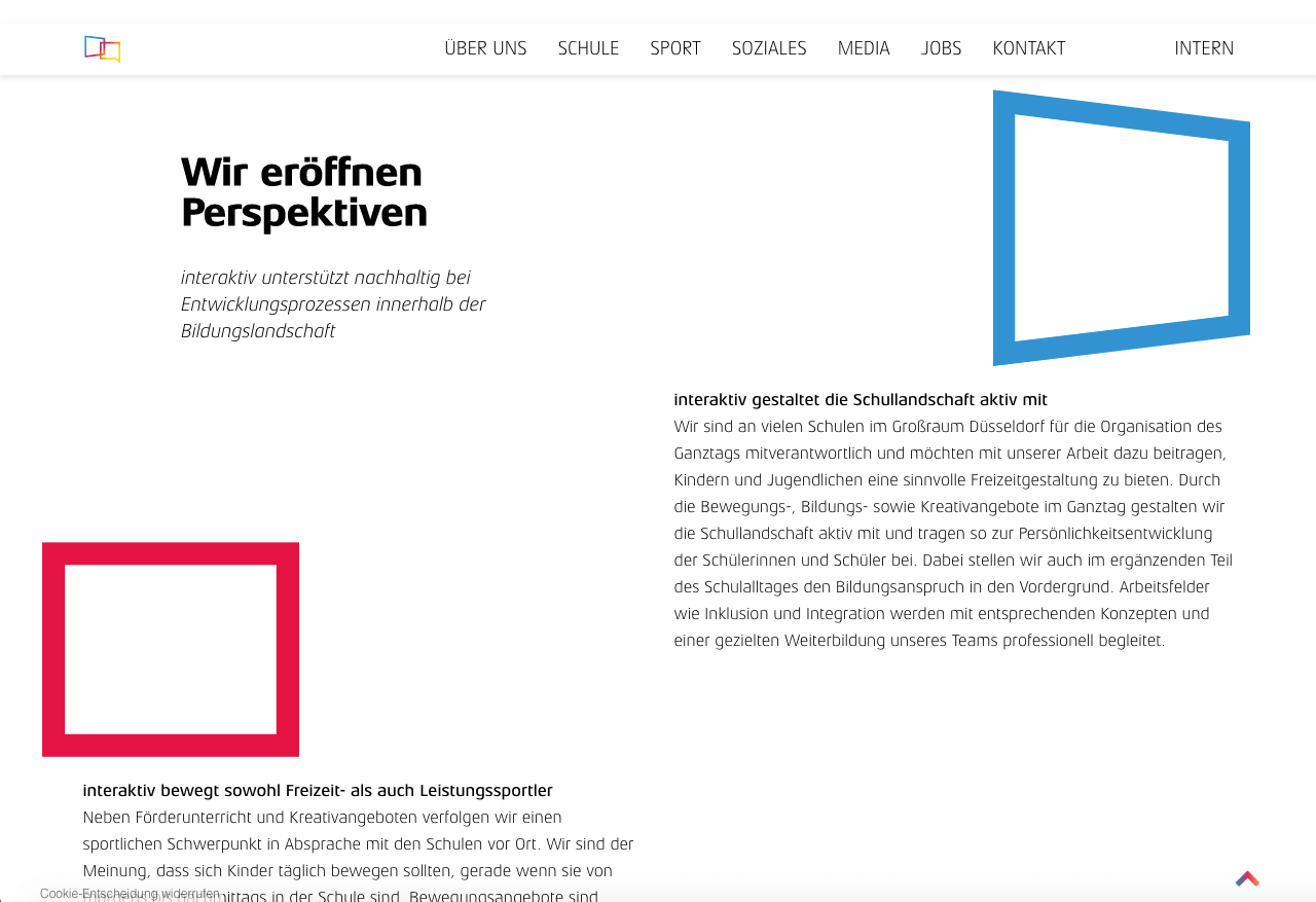 Das Webdesign lieferte eine Kreativagentur. Das Besondere an diesem Design sind die grafischen Elemente, die oftmals aus dem Raster des inhaltlichen Aufbaus brechen. Die Umsetzung unter Beachtung sämtlicher Bildschirmgrößen forderte unser Know-how, führte aber zur erfolgreichen Umsetzung.