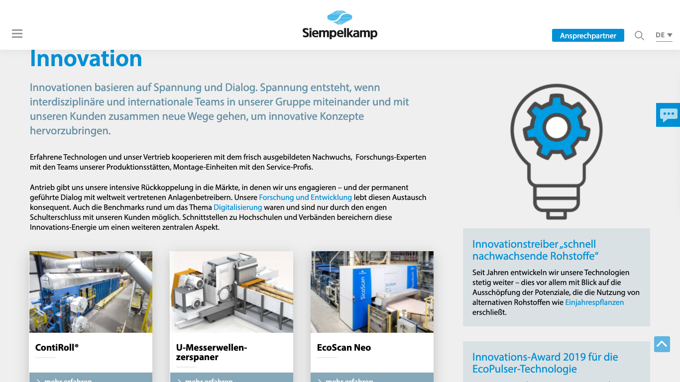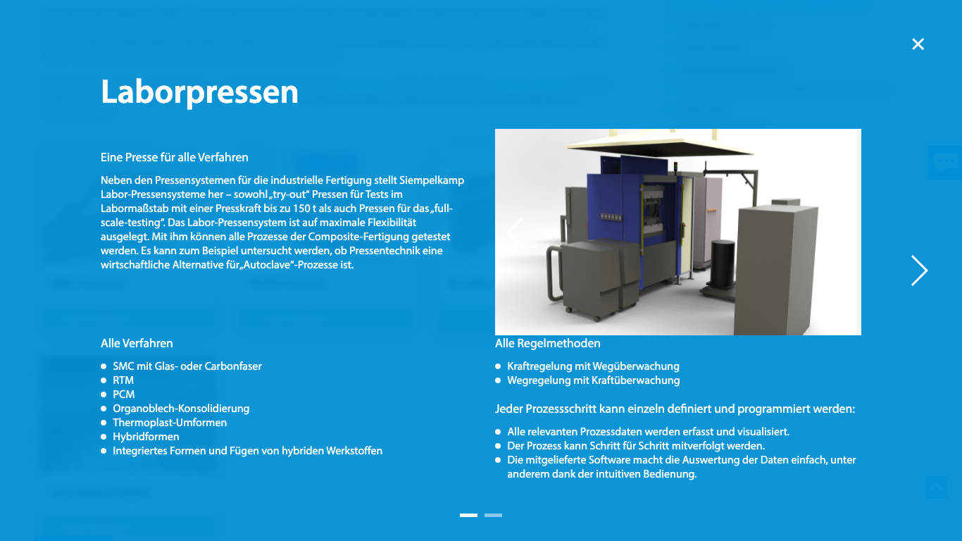Die Integration bislang externer Websites von Tochterunternehmen der Siempelkamp-Gruppe in das TYPO3-System, geschützte Bereiche für die interne Kommunikation und weitere Specials runden unser Dienstleistungsportfolio für die Siempelkamp-Gruppe ab.
